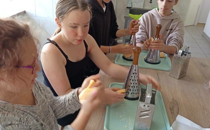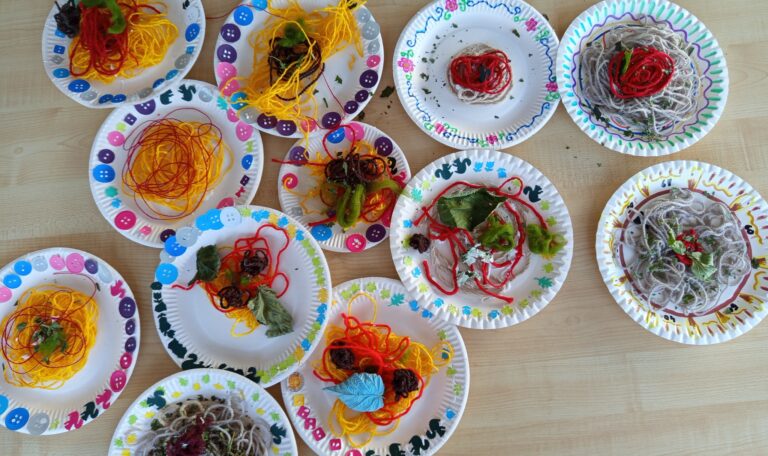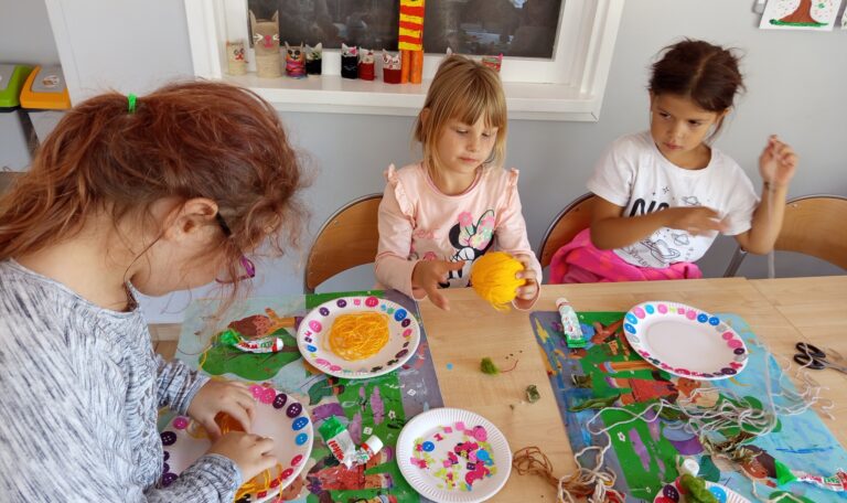 Oprócz dania, dzieci przygotowały pracę plastyczną ze spaghetti w roli głównej.