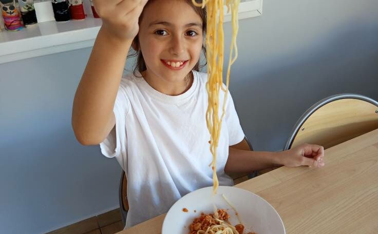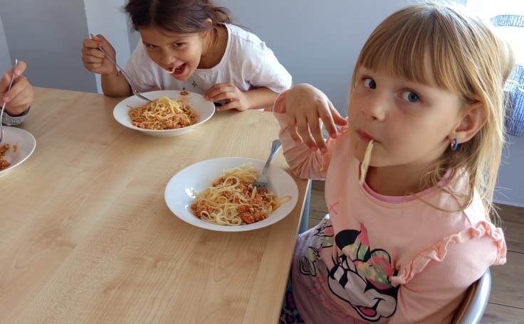 U nas w świetlicy wszyscy lubią makaronowe nitki z sosem pomidorowym.
