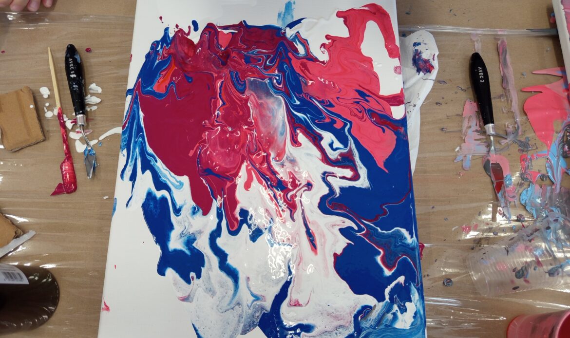 Podczas ferii w naszej świetlicy odbyły się warsztaty plastyczne w technice pouring art. Technika pouringu
