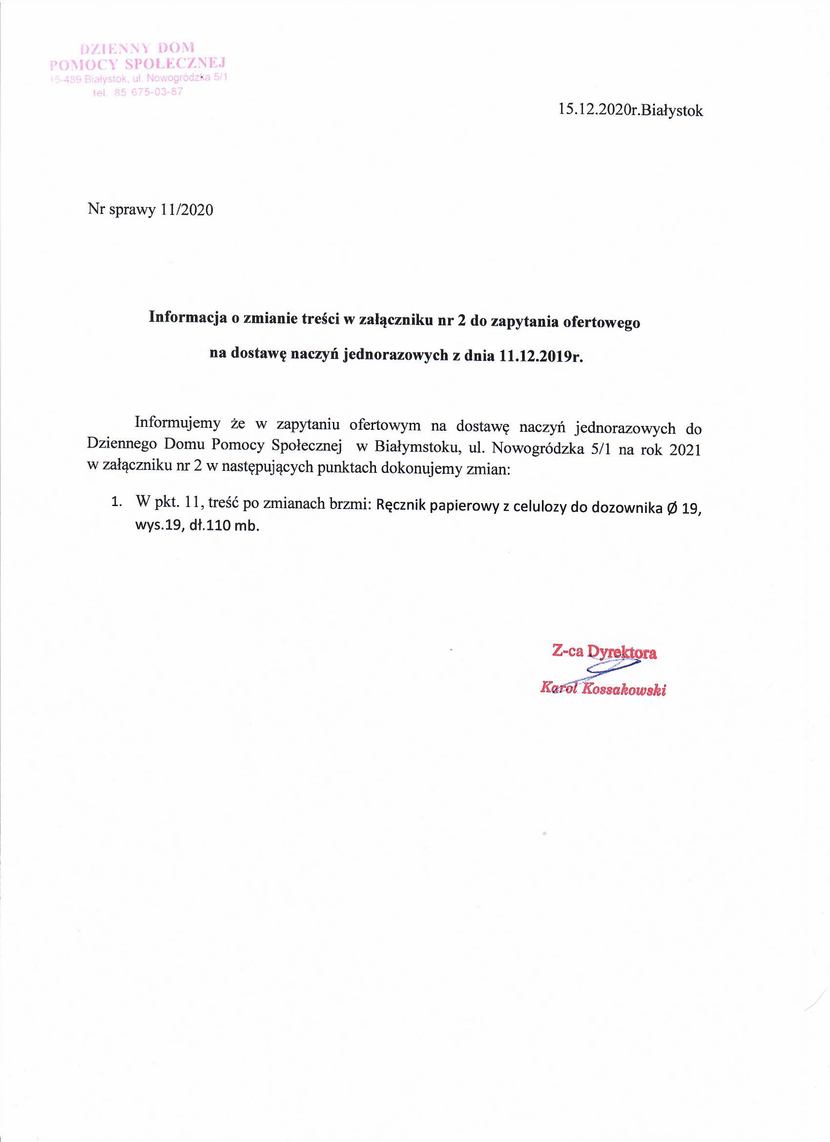 Strona główna Plik Informacja o zmianie treści do zapytania ofertowego na dostawę naczyń jednorazowych